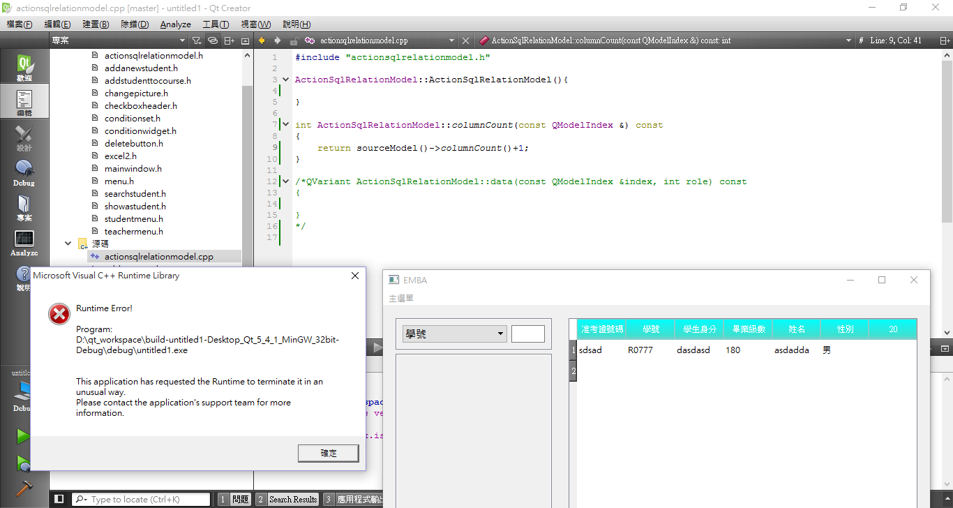 QVariant ActionSqlRelationModel::data(const QModelIndex &index,int角色) const { if (角色== Qt::DisplayRole) {返回新QPushButton;}返回QVariant()};我尝试使用QIdentityProxyModel,但它会出现错误消息。我只是试图覆盖列数。