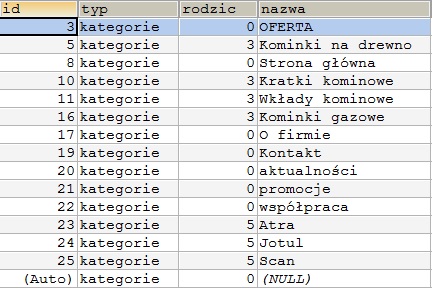 ['id' => 5, 'typ' => 'kategorie', 'rodzic' => 3, 'nazwa' => 'Kominki na drewno'],