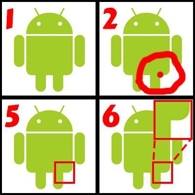 实现您想要的目标的更容易的方法是使用Rect to Rect 方法。也就是说,您希望从原始图像(5)中提取一个小区域,并将其绘制到更大的区域(6)。