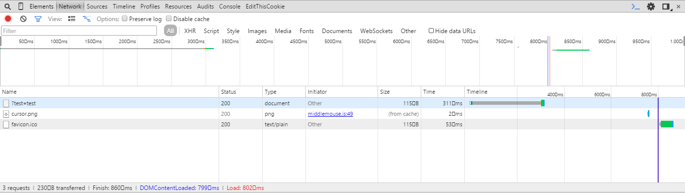 我已经测试了您的代码,问题是您在浏览器中测试了它。您的浏览器发送请求,然后请求查看。就这样。在检查的图像上,它是第一行和第三行。下一次尝试从cmd运行脚本。