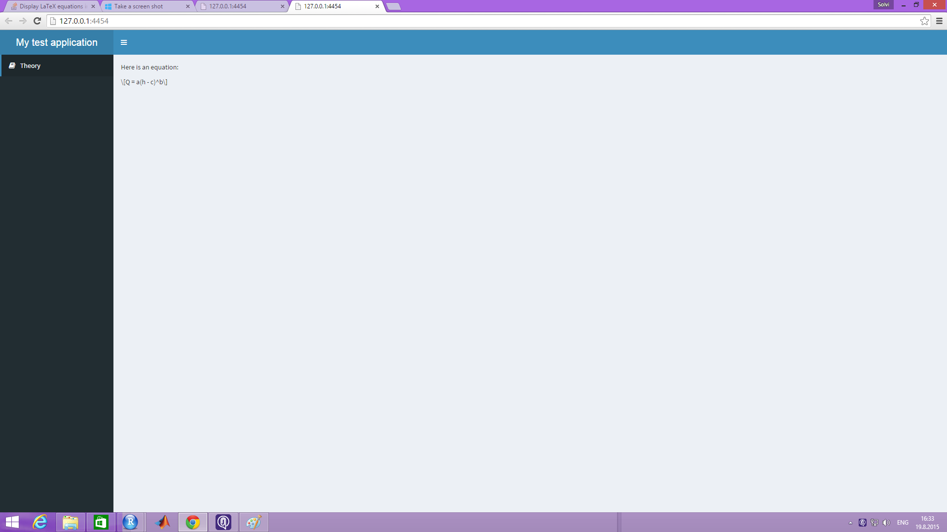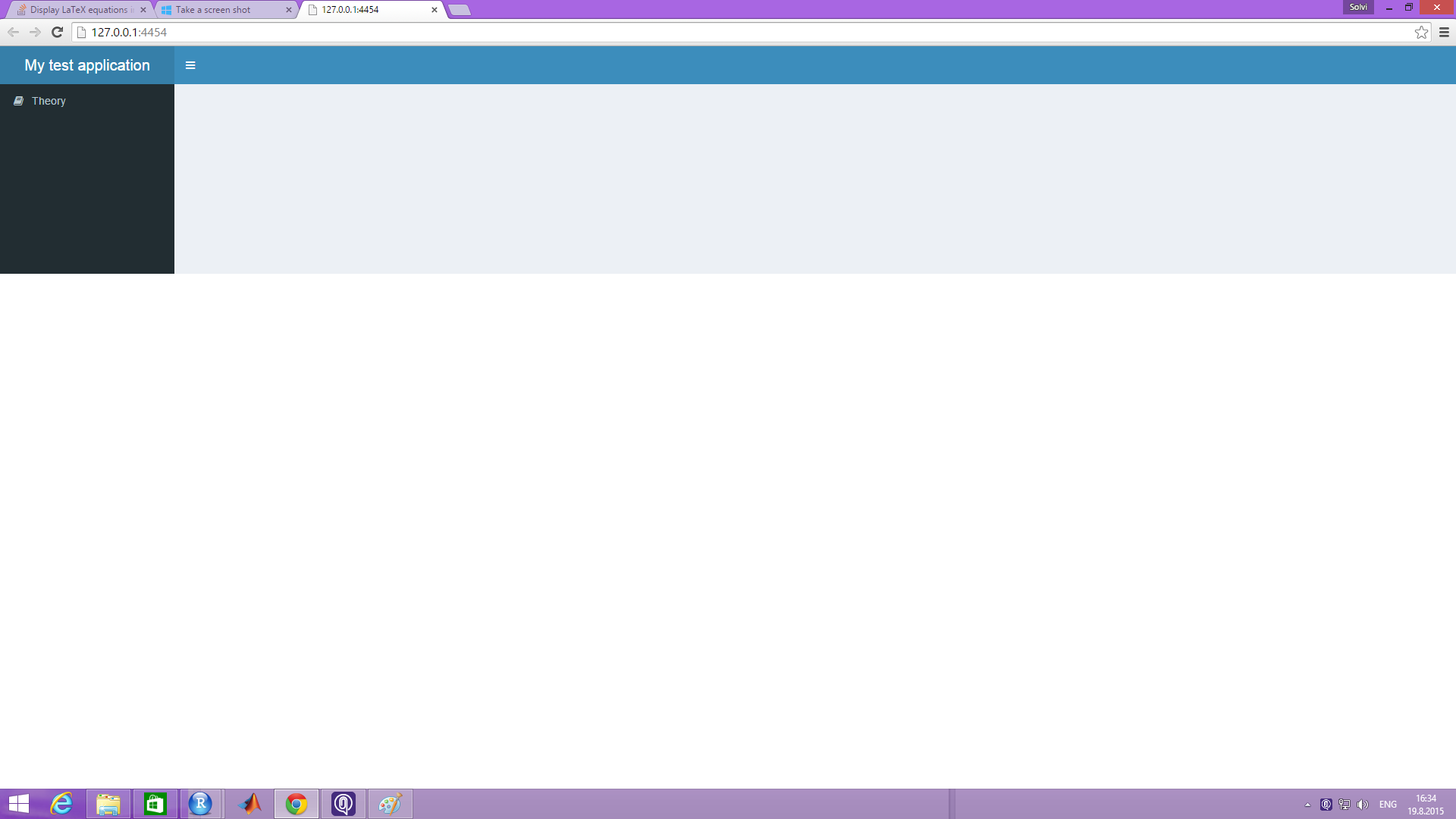 然而,使用includeHTML("Theory.html")可以正确地呈现方程,但屏幕显示会缩短,默认情况下,它不会在任何菜单项中开始,如下所示: