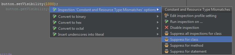 Must be one of: View.VISIBLE, View.INVISIBLE, View.GONE less... (Ctrl+F1)