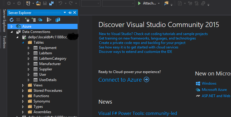 长问题:我正在创建一个可视化工作室15网络应用程序。我正在使用visual studio数据库项目来创建和管理数据库架构。我能够在数据库比较和更新期间创建数据库。我的服务器名是“(Localdb)\ProjectsV12 12”。我还能够从数据库中创建实体。所以我知道数据库就在某个地方。我从来没有在本地框上安装过SQL服务器表达式(我通常使用Azure SQL)。