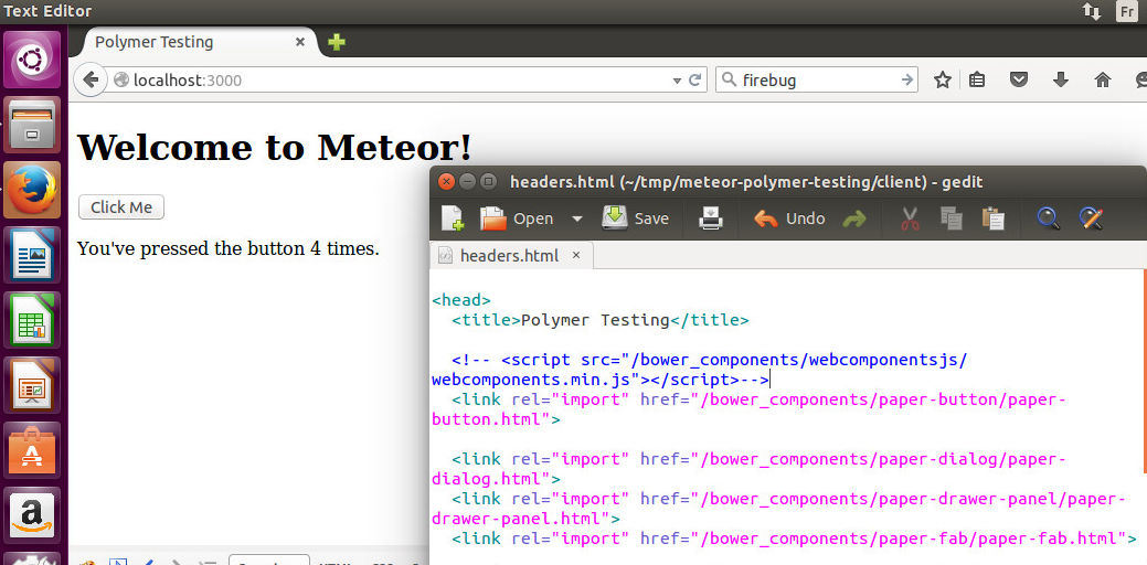 在ubuntu15.0.4上,火狐的按钮似乎不能工作,这是因为在headers.html文件上导入了js文件headers.html。尝试在headers.html上注释这一行并再次测试。