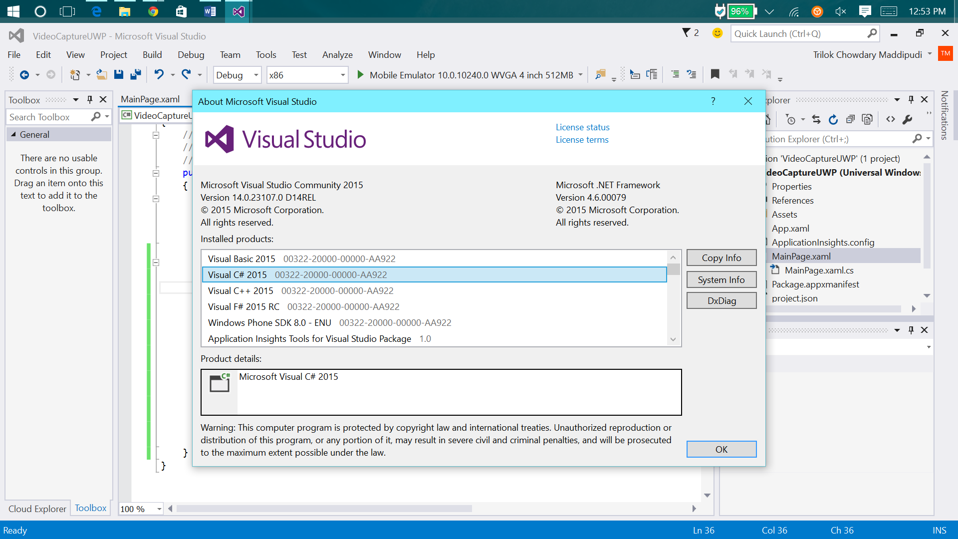 我检查过您正在从屏幕快照中使用版本,但基于本文(https://blogs.windows.com/buildingapps/2015/06/29/release-dates-and-compatibility-visual-studio-2015-and-windows-10-sdk/),在创建UWP应用程序时,Windows 10预览版本将无法与Visual 2015 RTM版本一起工作,因此您将遇到错误,请尝试将您的Windows10Pro内部预览升级到Windows10RTM,此外,Windows10Pro内部预览还有很多错误。