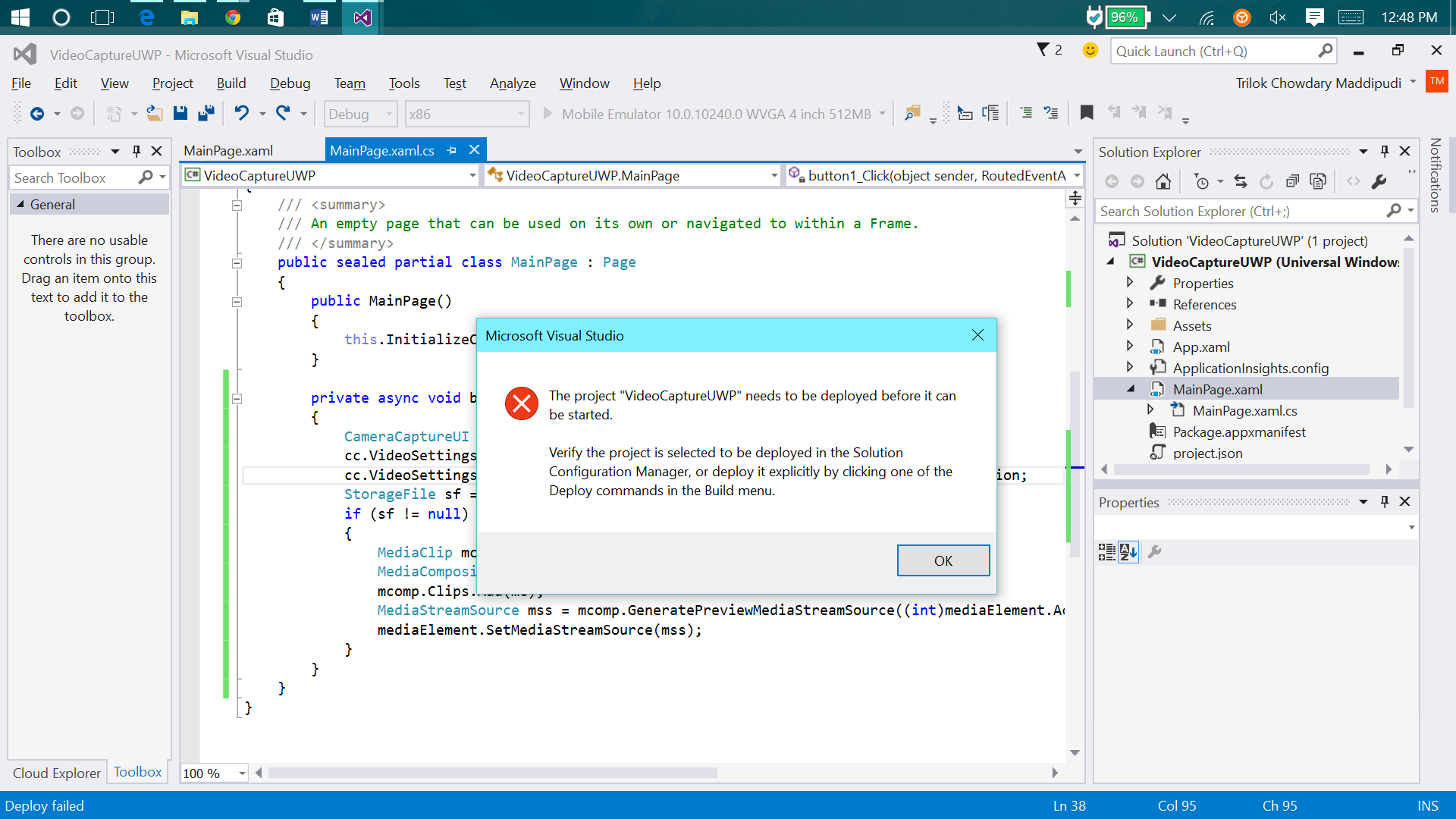 当将包部署到windows设备或模拟器时,我将面临以下错误。