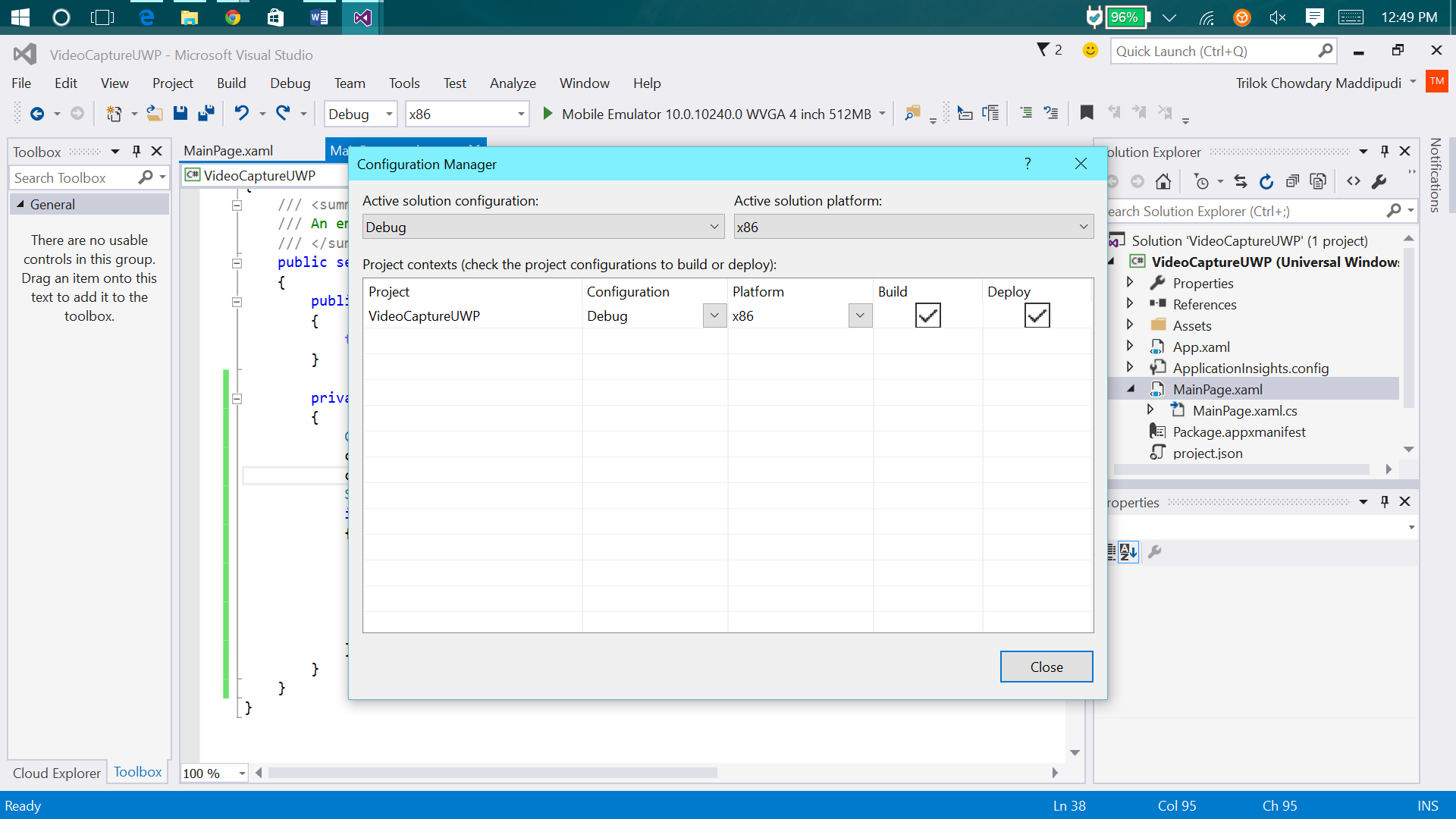 错误:验证选择了要在解决方案配置管理器中部署的项目,或者通过单击build菜单中的deploy命令明确地部署它。