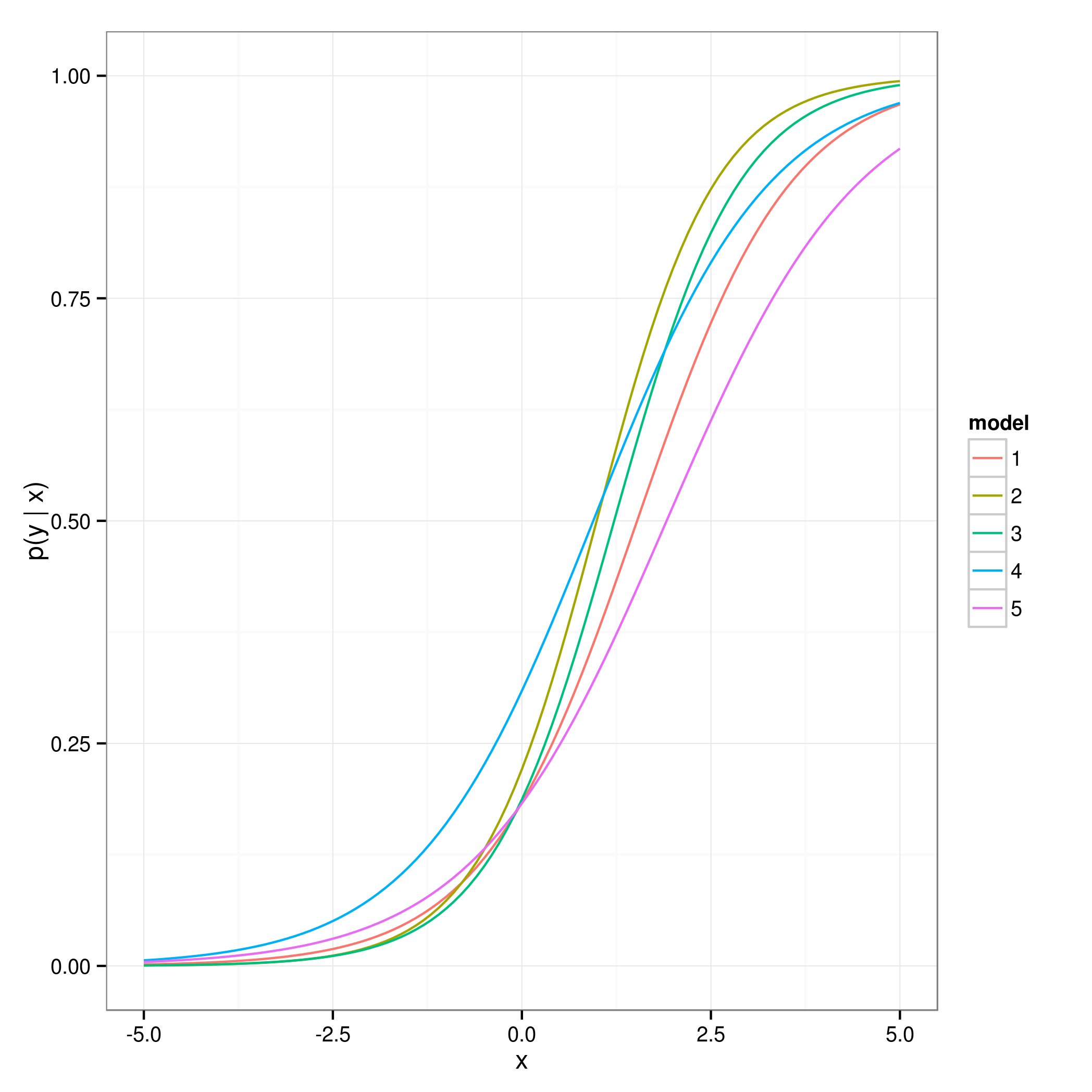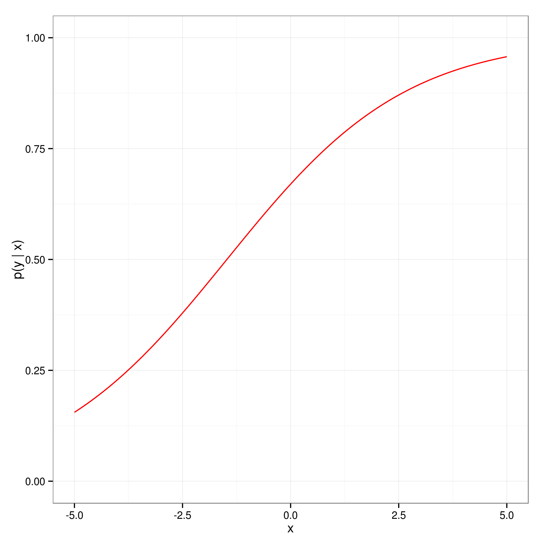 xlab("x") + ylab("p(y | x)") +