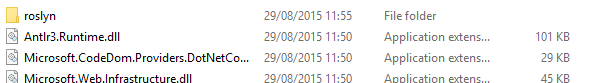 我正在尝试使用Visual 2015和.NET 4.5.1创建web应用程序。当我发布网站时,visual会创建名为roslyn的文件夹。
