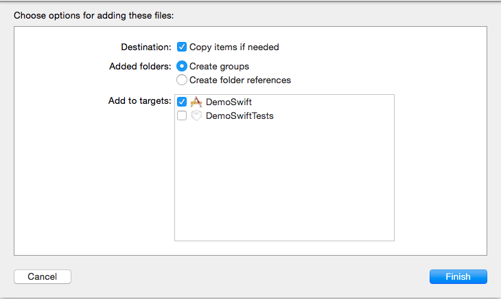 在项目中添加SDWebImage文件夹时,请选择以下选项。若要将文件夹副本添加到目标项目并创建组,请执行以下操作。