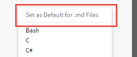 我似乎找不到改变某些文件扩展名(文件扩展名)使用的默认语法的答案。在我的例子中,我想更改默认的标记语法,而不是使用包含的"Markdown (Github)“语法。我假设有一个选项可以控制这一点,就像当我在编辑文件时,在选择菜单"Markdown“中手动更改语言时,”Markdown“中的单词”Default“。