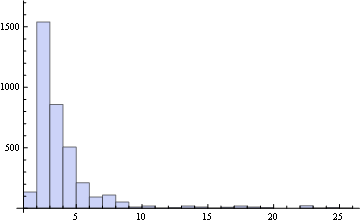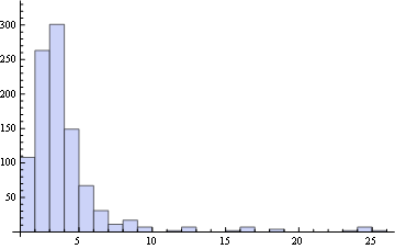 关于数学中链长分布的一个小实验: