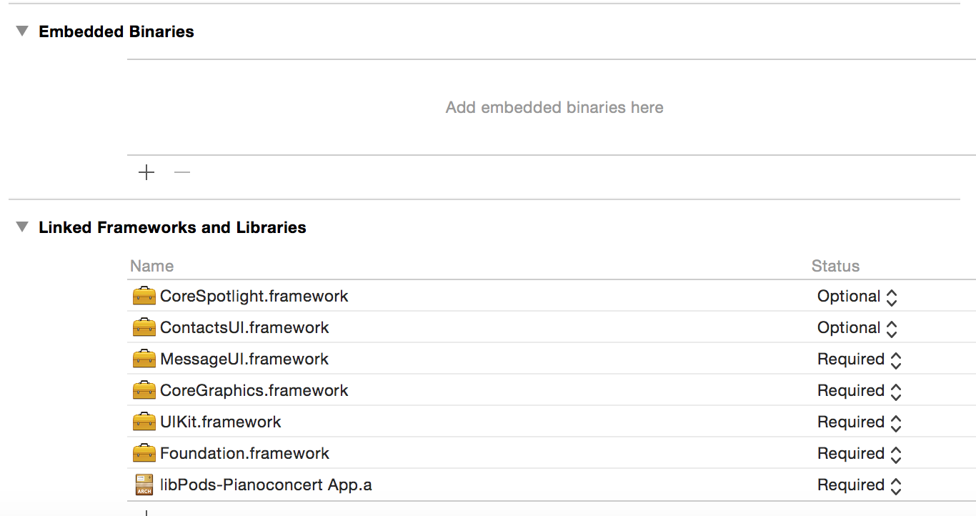我通过从嵌入式二进制文件列表中删除框架来解决这个问题。现在,我的所有框架都在链接框架和库列表中: