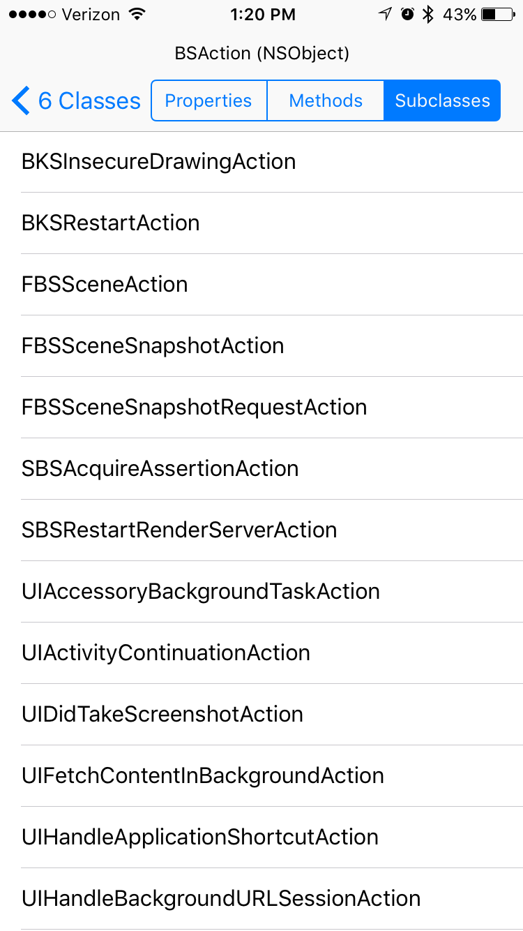 然后我编写了类似于工具的RuntimeBrowser,并查找了BSAction的所有子类。结果发现有很多这样的人: