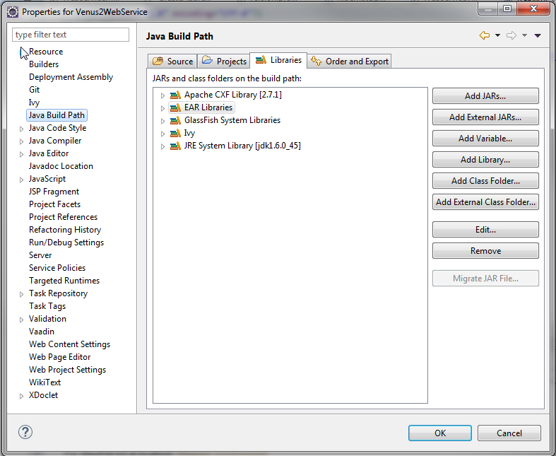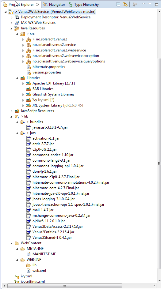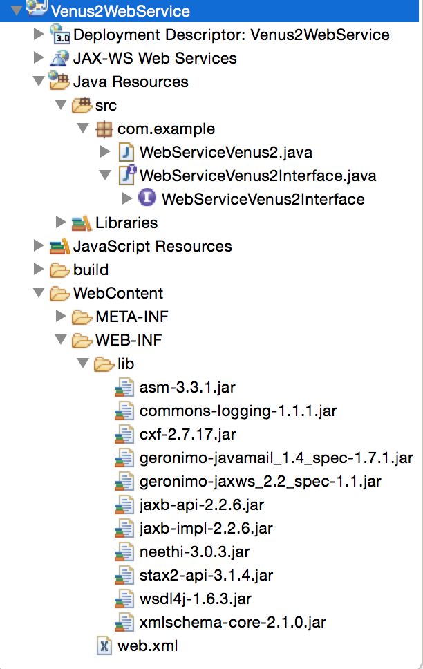 listening at address at http://oc-mbp01.local:8181/Venus2WebService/WebServiceVenus2Service.Classpath (全部为我在WEB-INF/lib中):