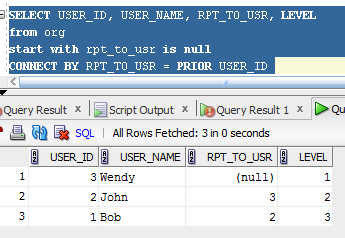 SELECT USER_ID, USER_NAME, RPT_TO_USR, LEVEL