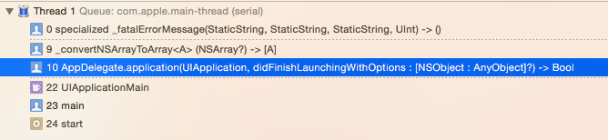 var cacheDirectory = NSSearchPathForDirectoriesInDomains(NSSearchPathDirectory.CachesDirectory, NSSearchPathDomainMask.UserDomainMask, true)然而,这种情况发生在其他数组转换之前已经成功的地方。