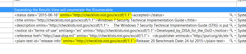 XNamespace ns = "http://checklists.nist.gov/xccdf/1.1";如果希望同时获取两个阀门,则可以将其投影为以下匿名类型:-