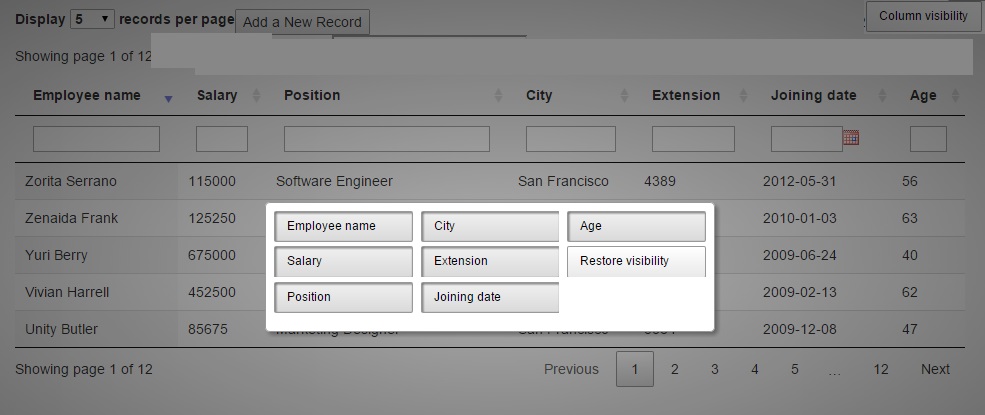 当任何人点击“列可见性”按钮时,他们会看到-