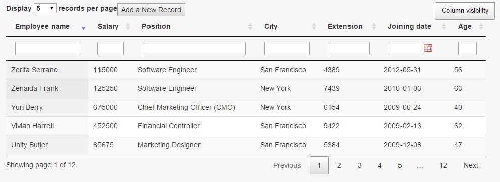 我喜欢使用jQuery DataTable插件,并且想要创建这样的东西-