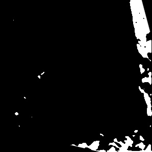 第四幅图像显示了在黑色背景下检测到的白色变化。正如我们所看到的,在第四幅图像的右边和底部,已经检测到一些变化(白色区域)。