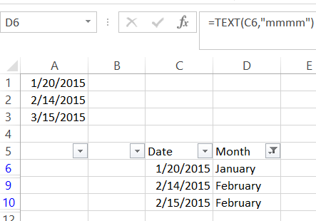 =TEXT(C6,"mmmm")放在D6中,然后使用下面的代码代码