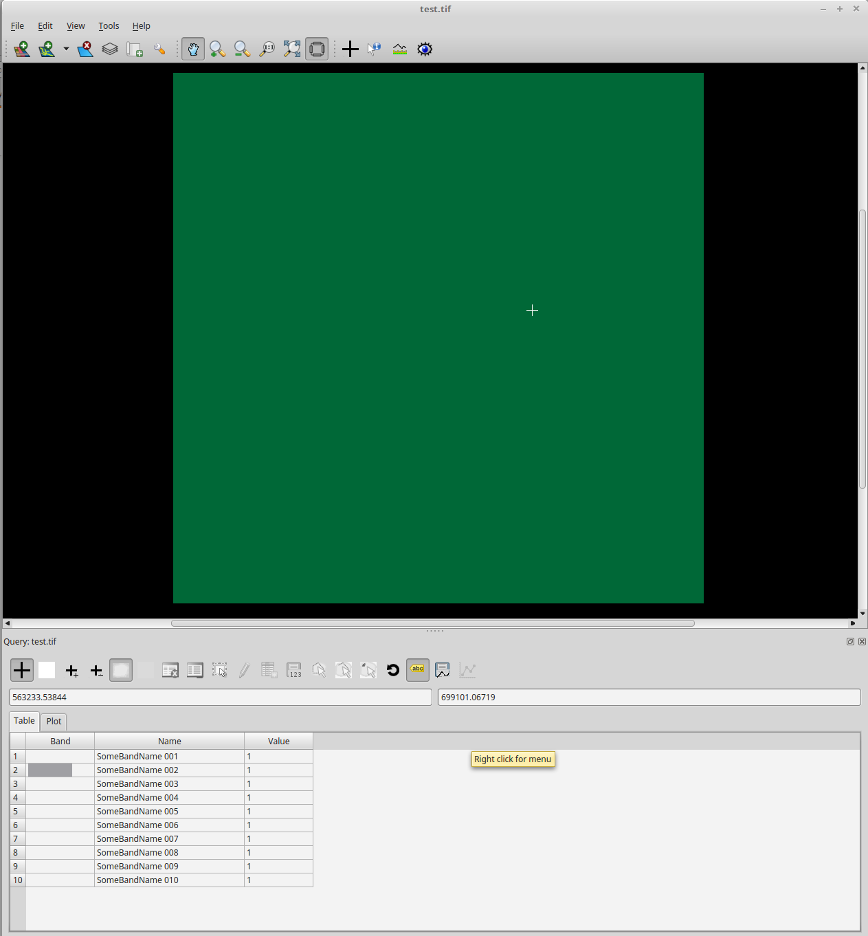 print("Done.")不幸的是,我不确定ArcGIS或QGIS是否能够读取波段描述。但是,带名在图维中是明显可见的: