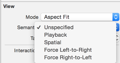 故事板中的属性“语义”是一条允许iOS知道视图是否应该翻转的规则。有多种选择:
