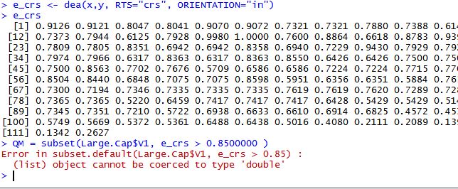 Large.Cap$V1[e_crs$eff > 0.85]使用来自?dea的可复制示例