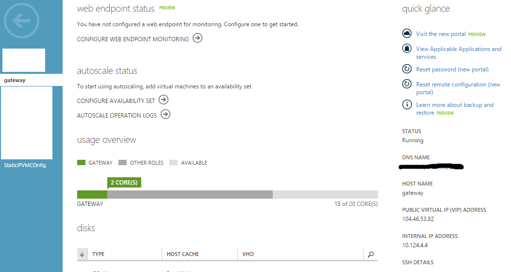 为了找到公共ip、goto门户,然后是VM仪表板。在右边,您可以看到一个快速浏览选项卡,您可以在下面看到公共IP。供你参考的快照-