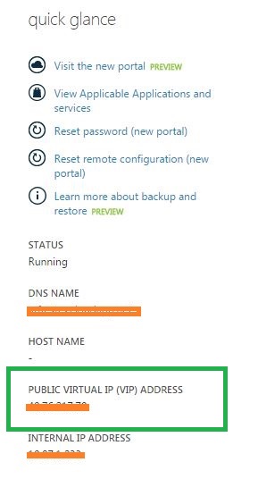 Get-AzureVM -ServiceName "testservice" -Name "testvm" | select PublicIPAddress注释-如果实例处于停止状态,则公共IP将为null。要了解更多关于公共知识产权的信息,你可以读到-