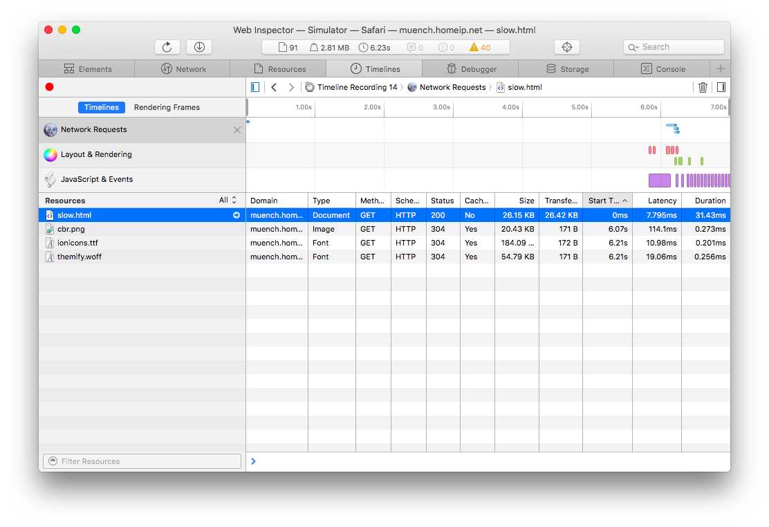 第一次的速度相当快,但是第一次加载后的刷新速度很慢。(5-10秒)而且不是每次都发生。这不是一个网络问题,因为我在本地网络上尝试了同样的结果。