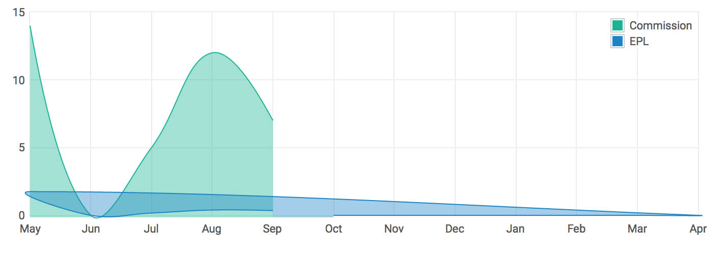 "data": [["Oct", 0],["Nov", 0],["Dec", 0],["Jan", 0],["Feb", 0],["Mar", 0],["Apr", 0],["May", 1.75],["Jun", 0.00],["Jul", 0.17],["Aug", 0.39],["Sep", 0.35]]