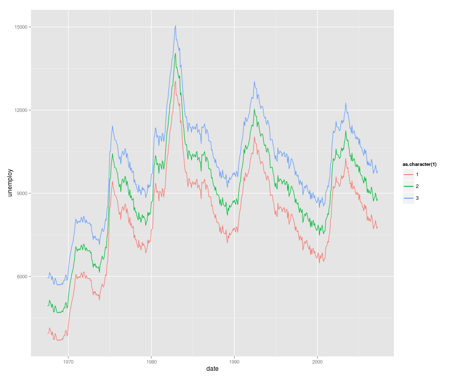 geom_line(aes(x = date, y = unemploy, colour = as.character(3)), data=economics4)