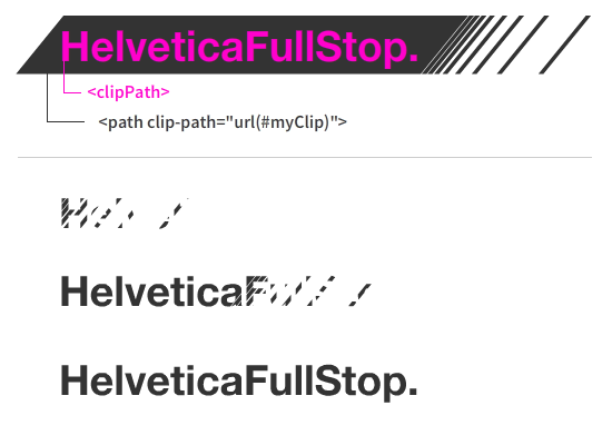 我有一个相对简单的设置:带有定义clipPath的SVG和使用上述掩码的path。静态地,这完全符合预期-- clipPath掩盖了我正在使用的模式。不过,我打算将path动画化,这样它就能很好地插入其中,从而产生一个很好的文本效果: