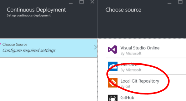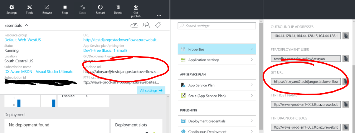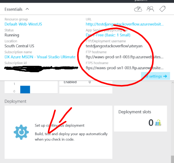 然后,它说要遵循在中使用GIT配置连续部署的指导。这显然会导致我有一个Django文件的本地目录。https://azure.microsoft.com/en-us/documentation/articles/web-sites-publish-source-control/