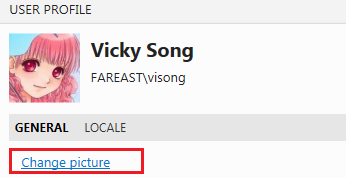 在TFS门户上,单击右上角的成员名称,然后选择My profile。然后在“用户配置文件”页面上,选择“更改图片链接”以选择所需的电话。