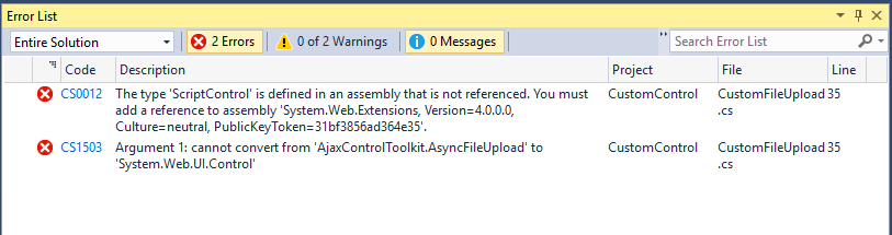 创建一个具有异步文件上载控件的自定义控件。但是,当我尝试在控件中添加异步FileUpload时,无法添加获取补时错误。以下是我的代码