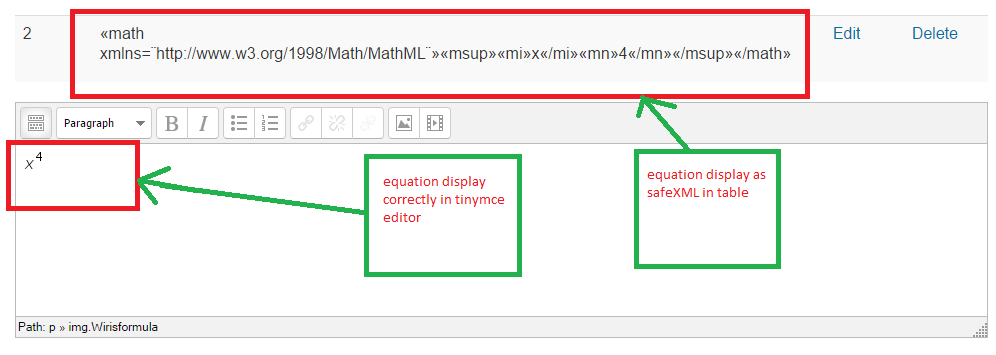 我在Moodle中使用tinyMCE编辑器的tinyMCE wiris插件。使用wiris编辑器I输入一些方程。但是,这些方程被插入数据库中,如