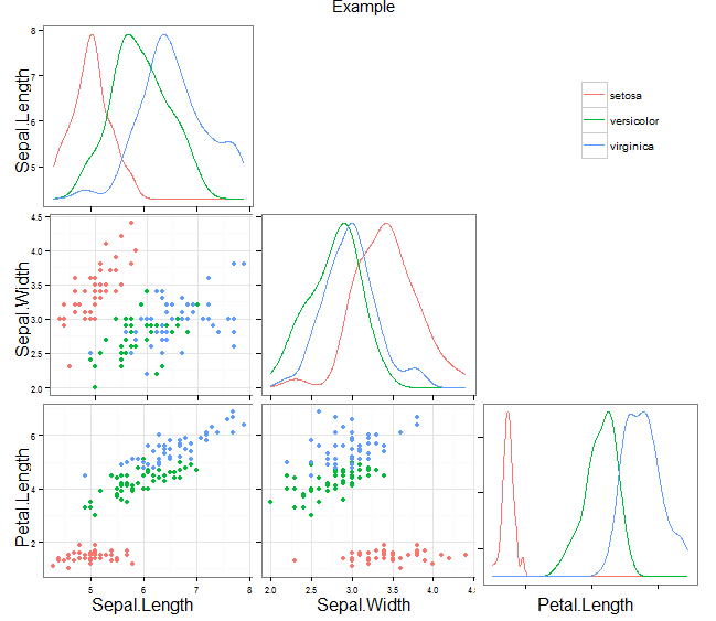 p <- ggpairs(iris, columns = col.index, upper = "blank", legends=T, lower = list(continuous = "points"), diag = "blank",