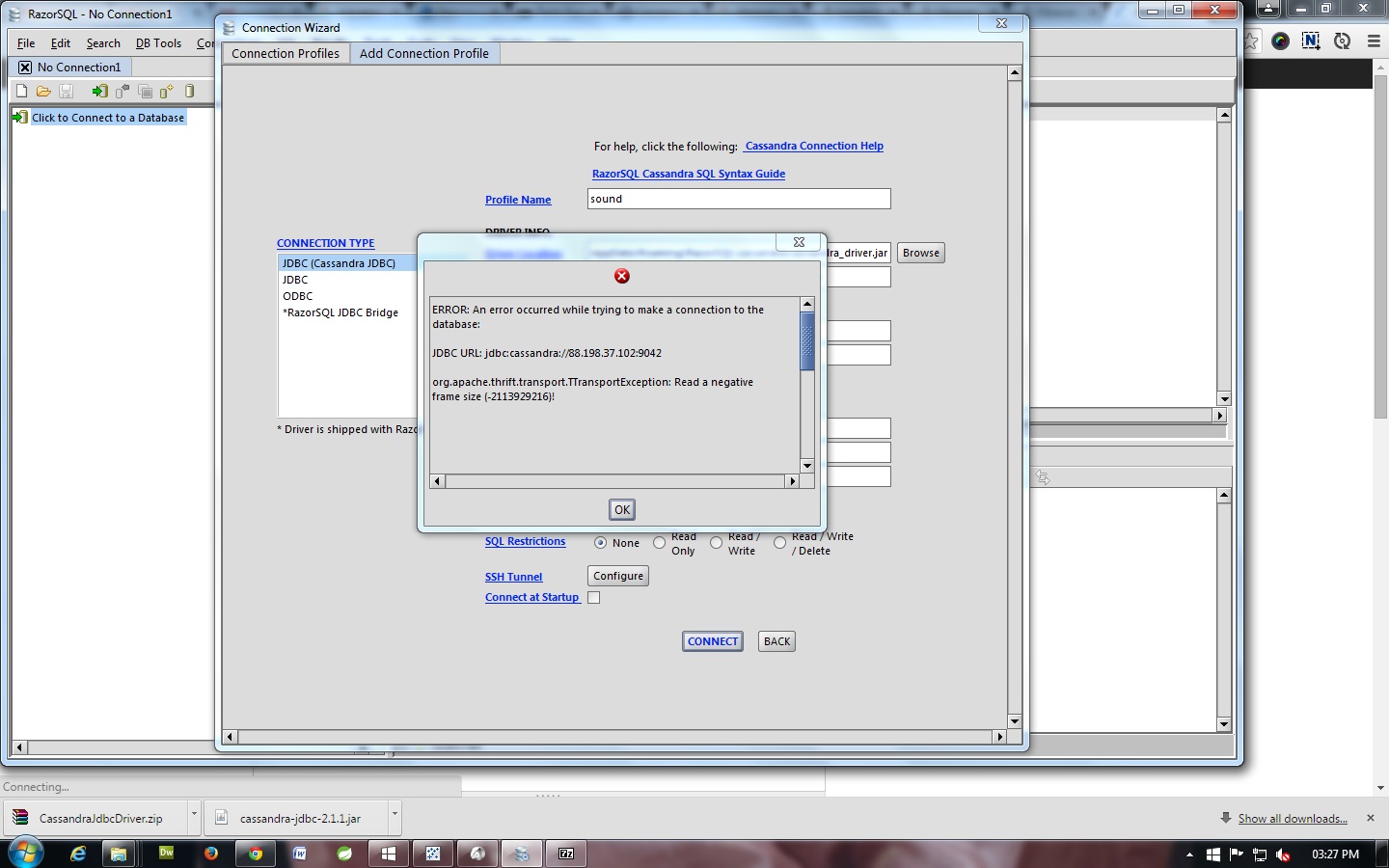 我正试图通过CassandraDB连接到RazorSQL。我是RazorSQL的新手。