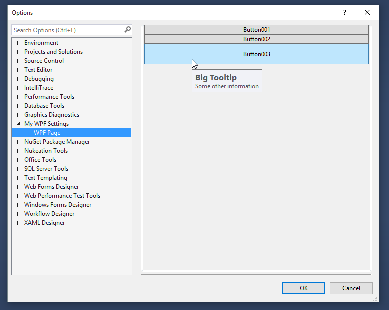 因此,虽然ElementHost不能在普通/WinForms DialogPage的消息循环中正确工作,但是UIElementDialogPage会。有许多类具有UIElement*或类似的前缀-它们将帮助将VS的遗留代码从Windows迁移到WPF。