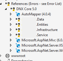 我更新了所有使用dnx50的项目,并删除了dnxcore50。我还是会犯同样的错误。一定是和我的installation....But有关,我不知道.