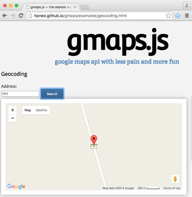 请看,GMaps.js不过是Google的简单汉德尔插件。它使用google.maps.geocoding搜索地址。如果地址找到的话。因此,在GMaps.js中没有什么可做的。谷歌地图能够找到那个地址。请查一下这里。