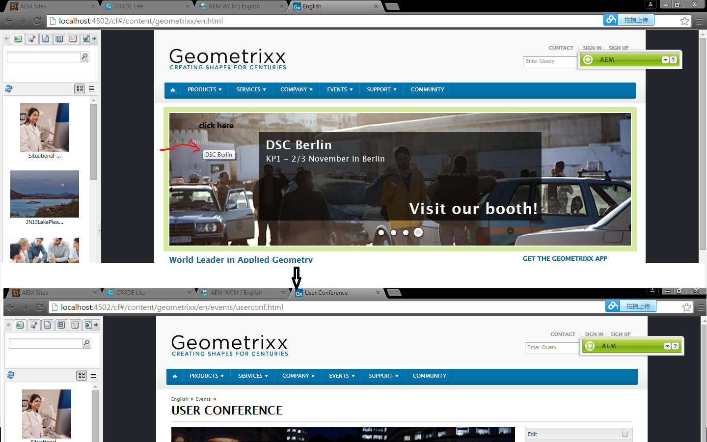 例如:我不能在TouchUI编辑模式下单击旋转木马中的图像,但在其他模式下,单击该图像后,它将重定向到另一个模式。