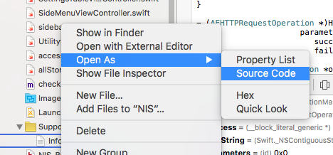 选择info.plist并单击右键->转到Source Code