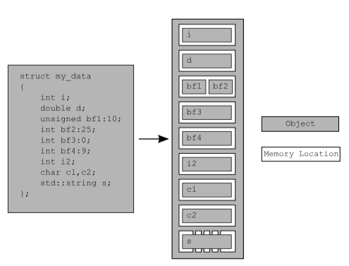 我在动作105页的C++并发中找到了这张图片。左边是结构,左边是结构的内存模型。根据本书的描述,bf1和bf2共享一个内存位置,但bf3和bf4有自己的内存位置,这让我感到惊讶。这本书没有解释为什么他们有这样的区别。我想知道为什么bf1和bf2共享内存位置,而bf3和bf4有自己的内存位置?