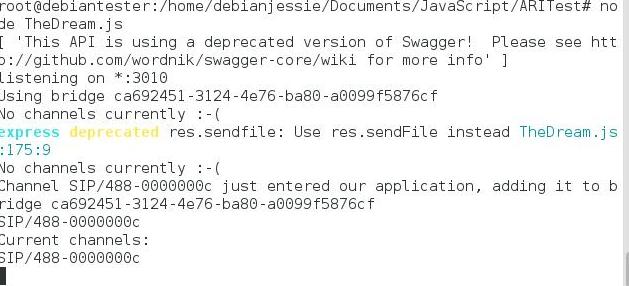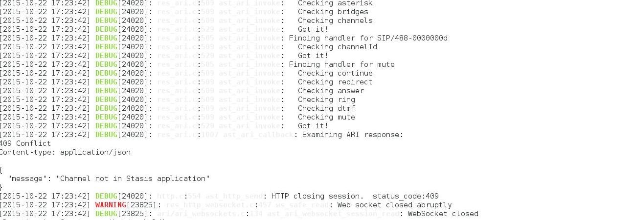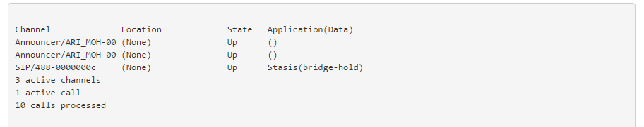 使用ARI客户端命令静音您刚刚从客户端传递到服务器端的通道,用户将被静音,并将显示在停滞应用程序中。