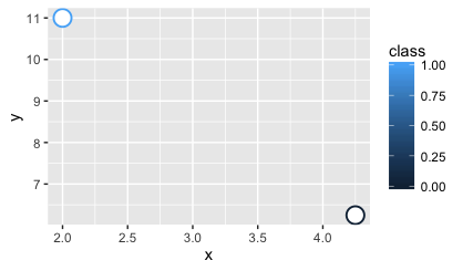 ggplot(df2, aes(x=x, y=y, colour=class)) +