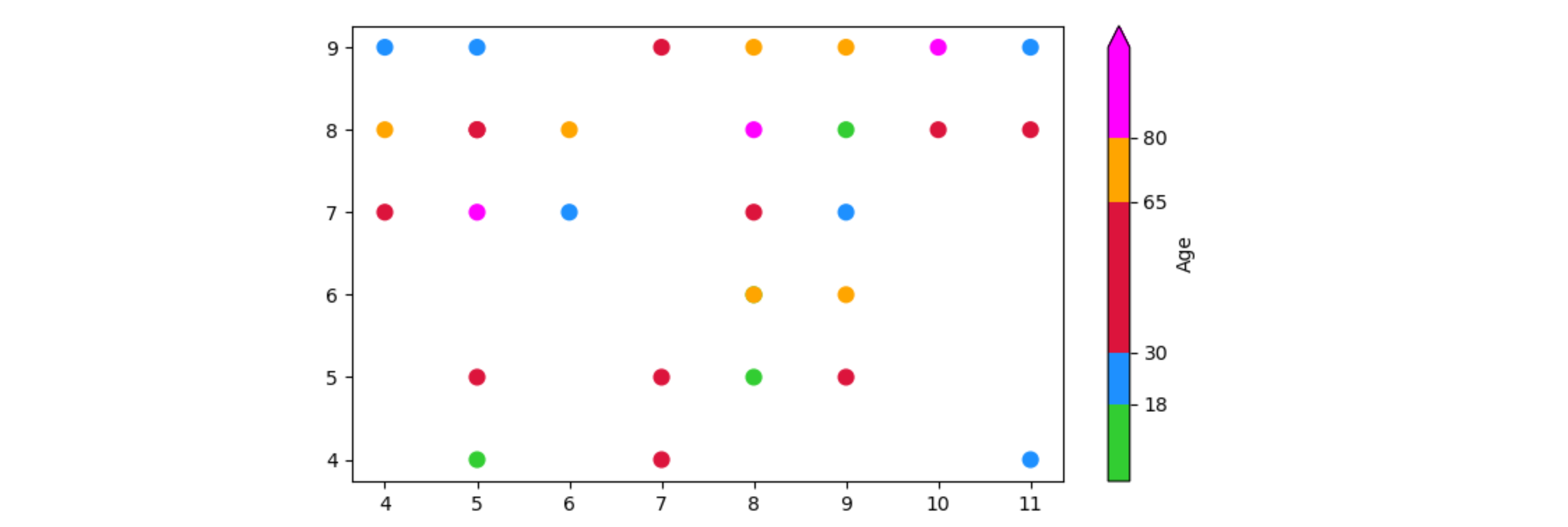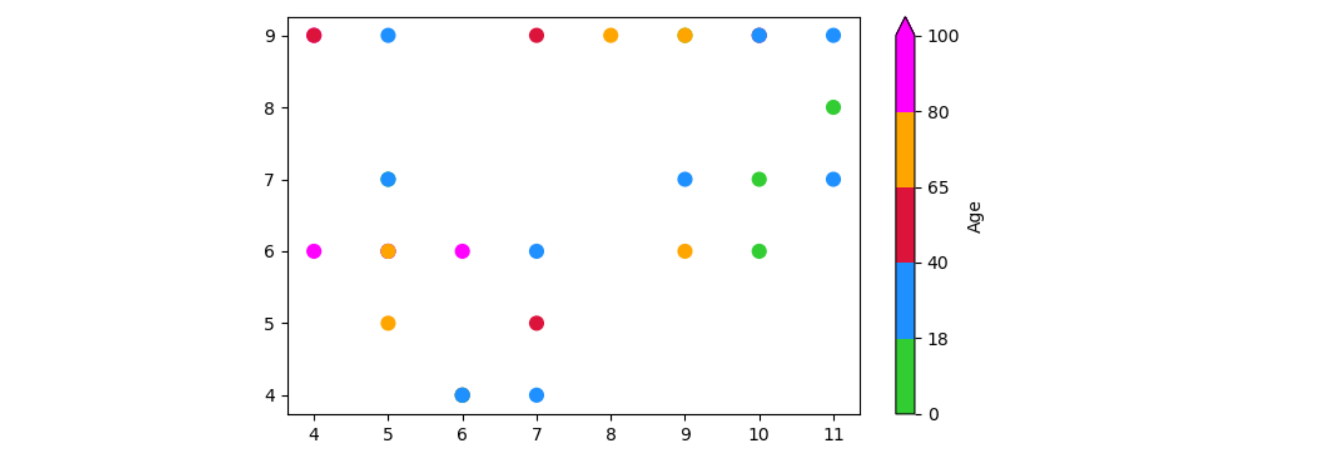 BoundaryNorm为每个年龄范围设置边界,并将颜色关联到每个年龄范围。